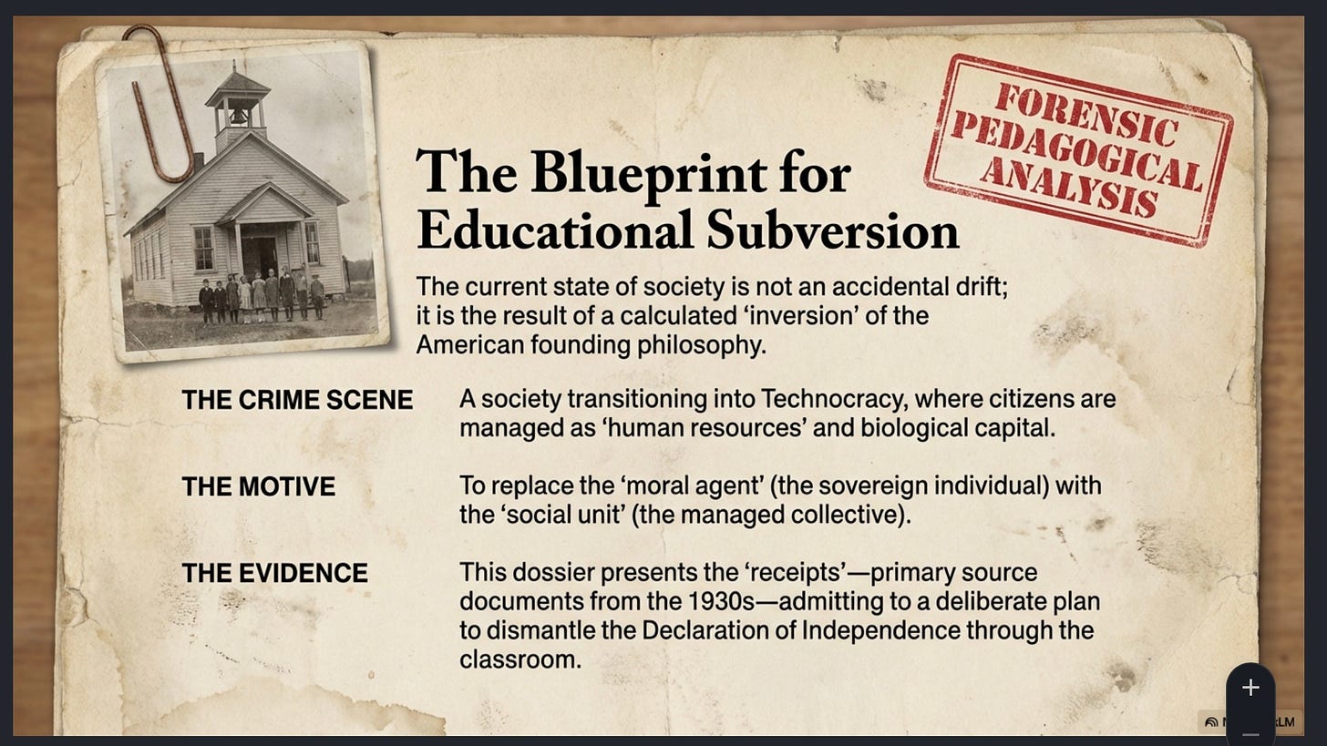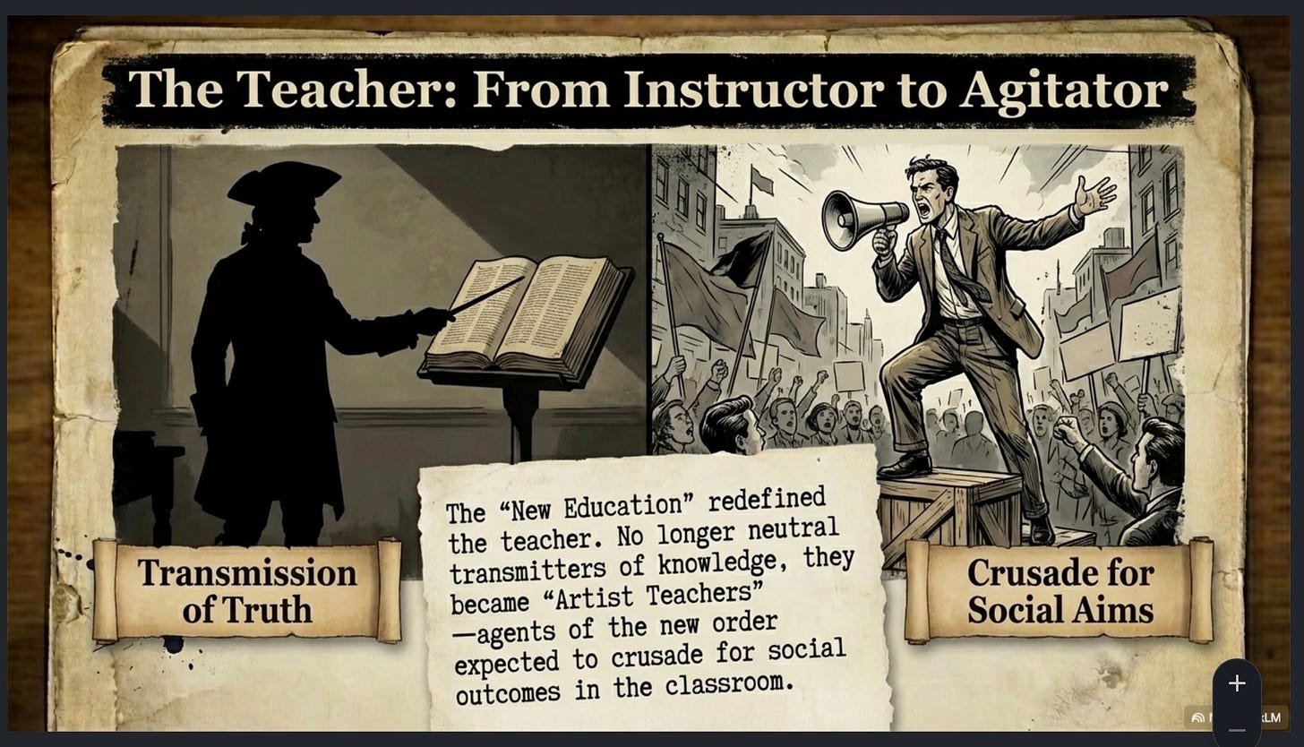 The historical arc from Scholastic formation to technocratic social engineering represents the ultimate Pedagogical Inversion. By dismantling the intellectual framework of the individual, the New Education movement conducted a successful campaign of asymmetric warfare against the American mind.
